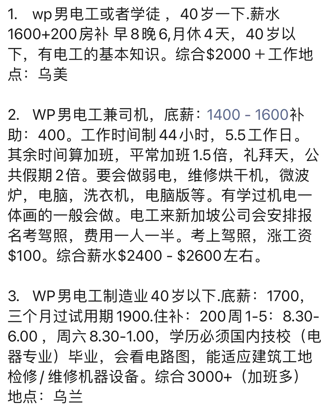 • 新加坡就業