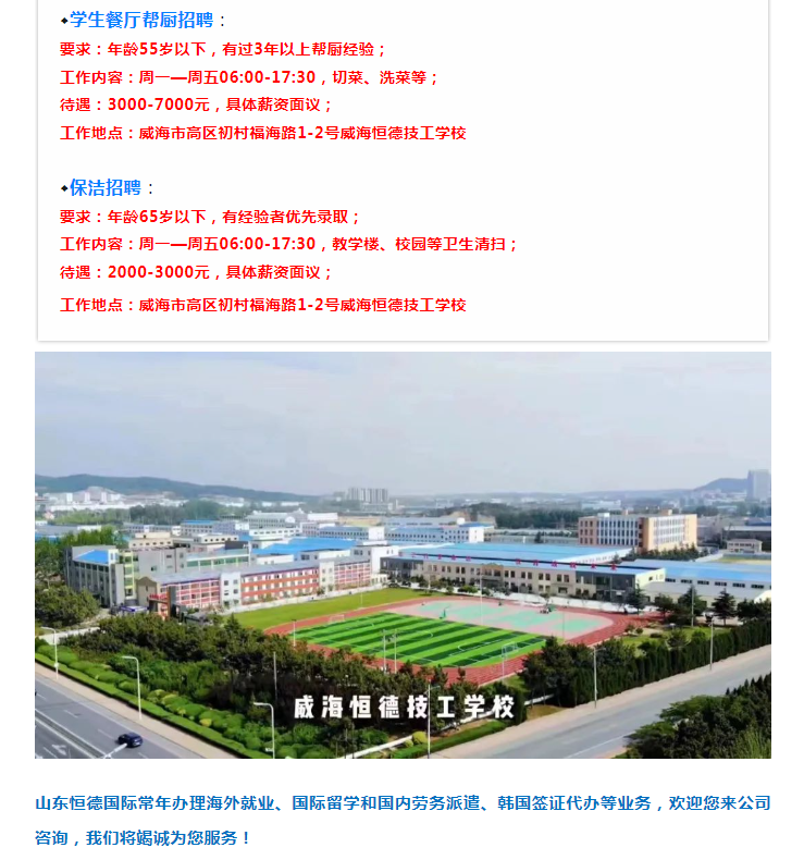 恒德國際教育集團(tuán)旗下威海恒德技工學(xué)校招聘以下崗位啦!!!