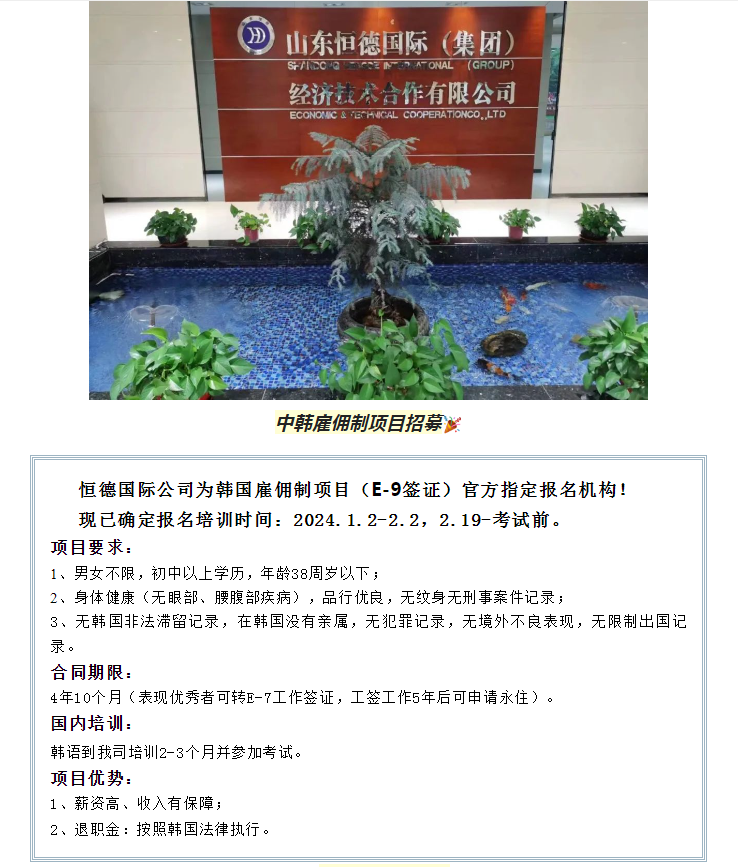 【恒德國際】定了定了!韓國雇傭制項目確定培訓時間